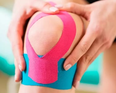 Vendaje funcional que brinda soporte muscular y articular sin limitar el movimiento, ayudando a disminuir el dolor y mejorar la recuperación.